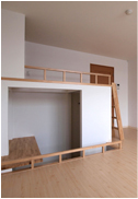 同志社田辺キャンパスの学生をターゲットとし、ロフト及び書斎スペースを確保しました。将来2戸を1戸とした2LDKへの間取り変更も対応できるようになっております。
